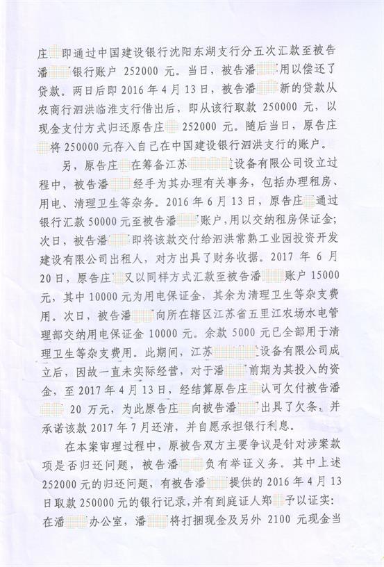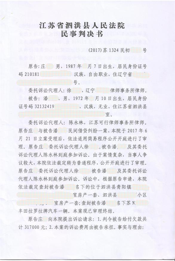 【代理經(jīng)過】第一次庭審后,莊某認(rèn)為勝券在握,竟然將潘某某家庭唯一住房也財(cái)產(chǎn)保全了。此舉令潘某某夫妻深感不安。本人與委托人潘某某進(jìn)行了一次開誠布公的談話。本人講繼續(xù)進(jìn)行該訴訟將會產(chǎn)生一筆較大的費(fèi)用支出,如果該筆25萬元確實(shí)沒有償還,就不要再浪費(fèi)大家彼此的時間和金錢了?墒,潘某某非常堅(jiān)持的要求本人為其想辦法。由此可以看出潘某某庭審中講的是真話。所以,本人就進(jìn)行了推理,根據(jù)了解到的莊某的性格,如果在2016年4月13日真的收到了潘某某的25萬元現(xiàn)金,那么莊某在本地沒有私人住房(日常住在合伙公司),也不可能將25萬元放在轎車內(nèi)的(不安全),所以,很有可能找一個方便的銀行現(xiàn)金存在賬戶上了。同時,莊某比較精明,即使上償還其他債務(wù)也不會用現(xiàn)金支付,所以,該筆現(xiàn)金被莊某存入銀行可能性非常大。但潘某某曾經(jīng)看到莊某由很多銀行卡。法院不可能允許我們把莊某的所有銀行卡查詢遍的,因此我們只能申請法院查詢在泗洪縣范圍內(nèi)開辦的銀行(農(nóng)行、建行、工行、合行)。經(jīng)過與法官協(xié)調(diào),艱難的獲得了一張調(diào)查令。我清楚的記得當(dāng)時開玩笑的對潘某某講,我們首先就查建行吧,看看老天爺幫不幫你。結(jié)果一下子就發(fā)現(xiàn)莊某在2016年4月13日下午在中國建設(shè)銀行泗洪縣支行現(xiàn)金存入25萬元記錄......
