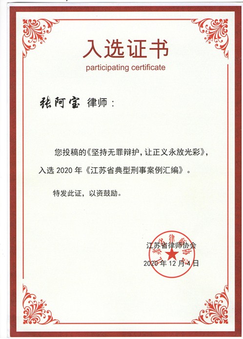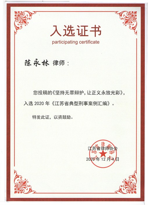 我所陳永林、張阿寶律師編寫(xiě)的《堅(jiān)持無(wú)罪辯護(hù),讓正義永放光芒》文章入選江蘇省典型刑事案例匯編